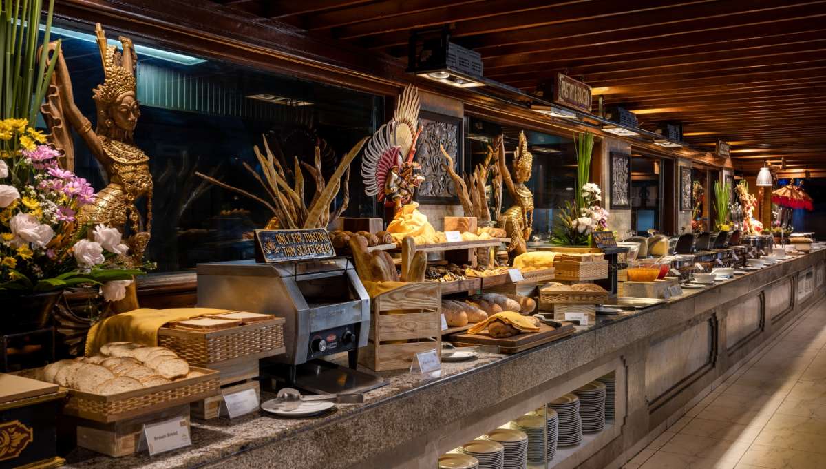 Mulailah hari Anda dengan sarapan prasmanan di bawah sinar matahari. Ada beragam hidangan internasional dan Asia, panas dan dingin, stasiun telur dan berbagai pilihan roti yang kami buat sendiri. Terletak di antara kolam renang utama dan menghadap ke pantai Mertasari yang menakjubkan, Tirta Restaurant menawarkan suasana pantai kasual sepanjang hari. All Day Menu di Tirta Restaurant menawarkan pilihan makanan seperti sandwich, steak, burger, dan salad. Sebagai tempat yang ramah keluarga, menu khusus anak-anak dengan porsi yang disesuaikan akan memuaskan mereka.