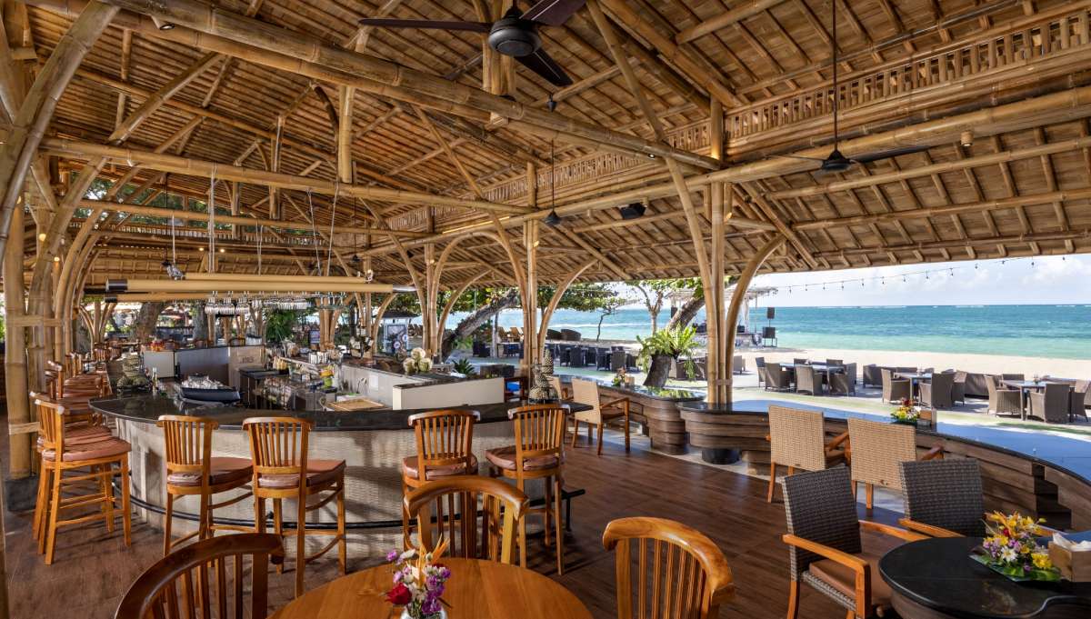 Alongside Mertasari beach, the Bamboo Bar & Lounge provides a casual yet classy setting and striking design. A sublime setting by day and ideal for lazy seaside afternoons, at sunset it is transformed by tasty snacks, wood-fired pizza and fruity cocktails, live music, and a fashionably savvy crowd.